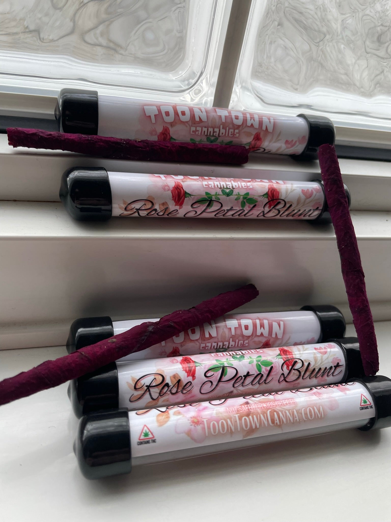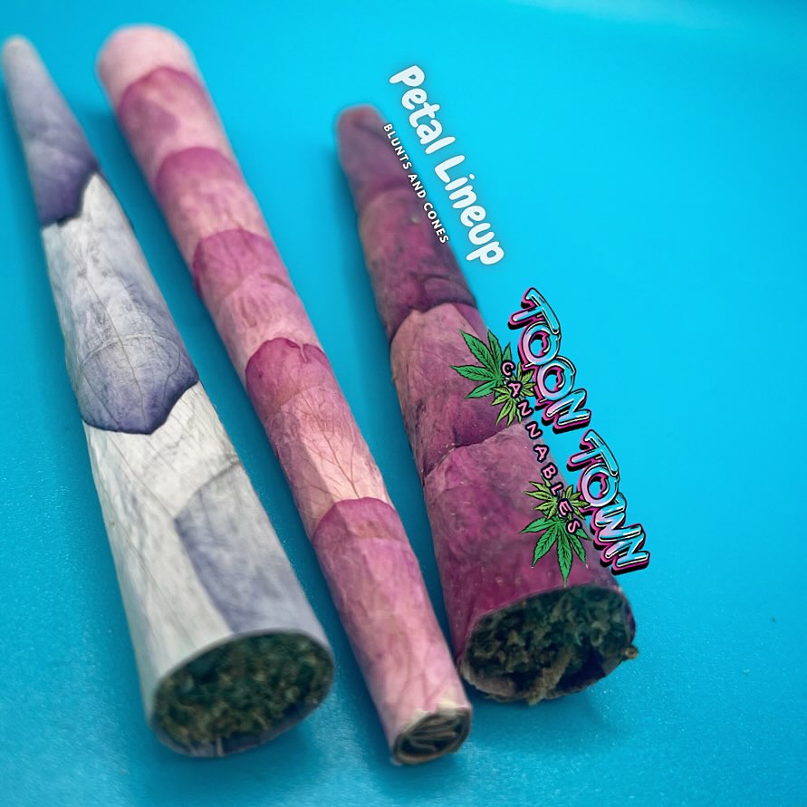 Indulge in luxury with our Flower Petal Cones, a cannabis blunt crafted with real lotus and rose petals. Face a heightened smoking experience with our unique blend of premium ingredients. Embrace the lavishness with every inhale.