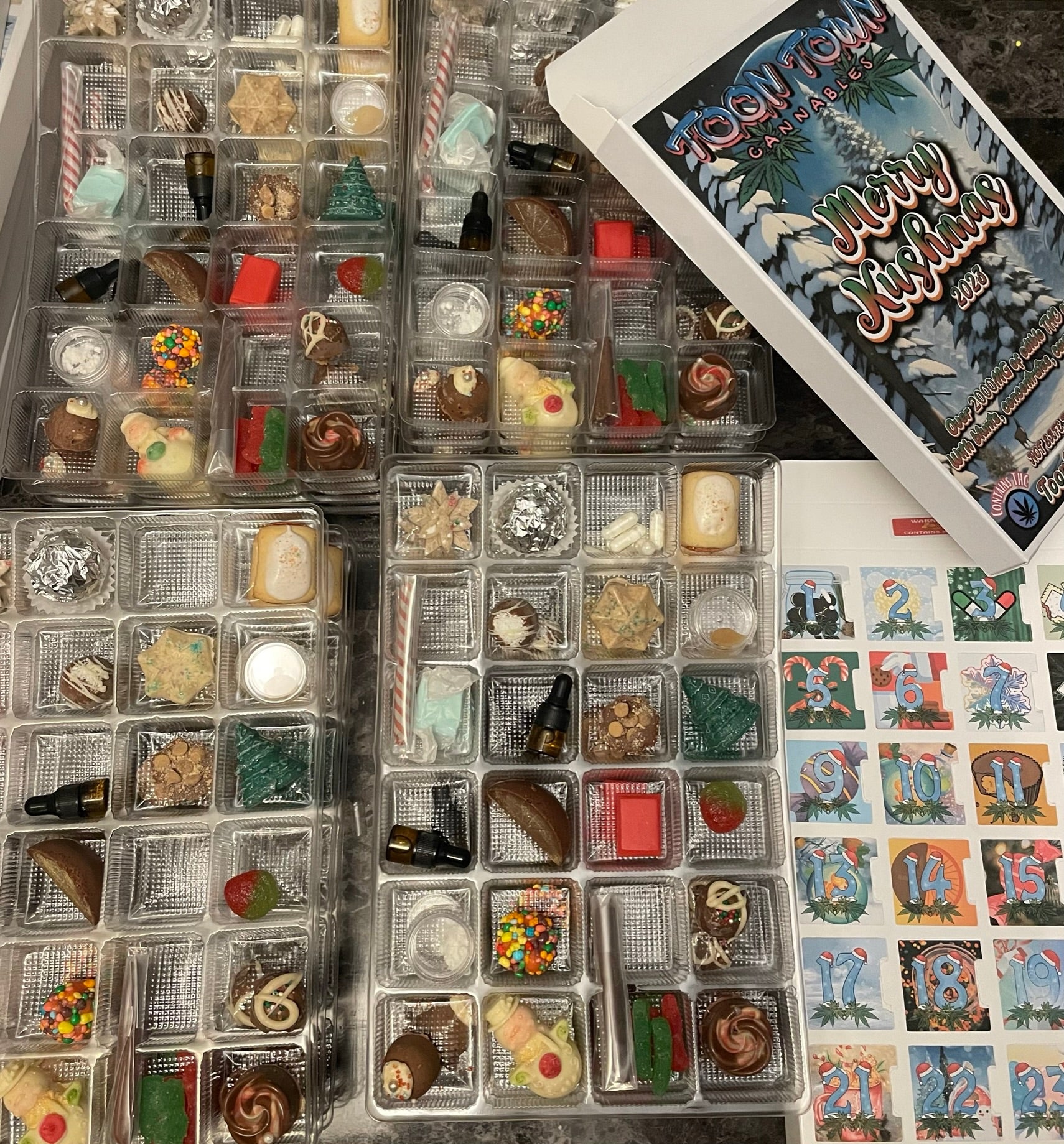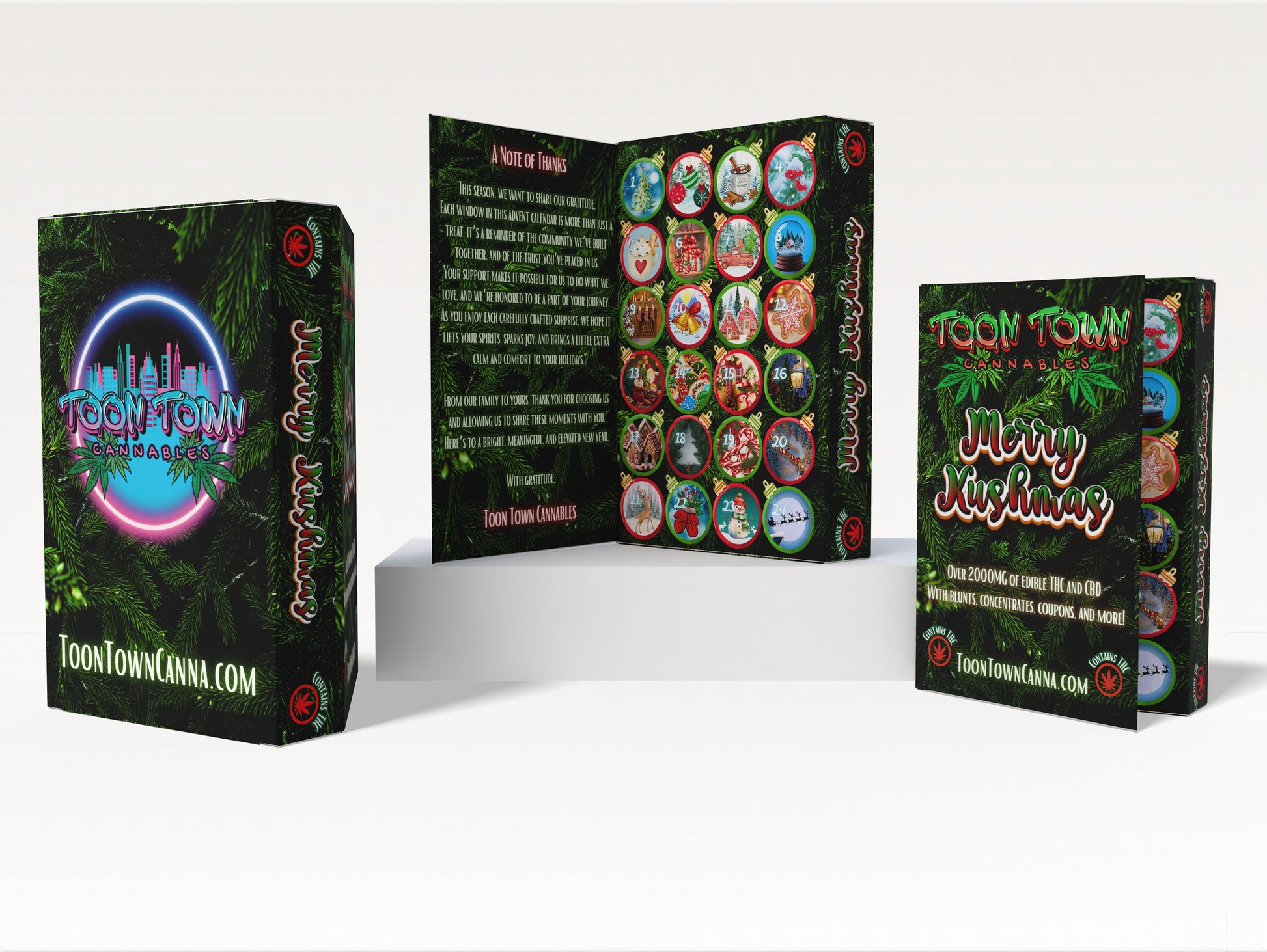 Experience our most coveted product yet: the Merry Kushmas Advent Calendar. Immerse yourself in over 2000MG of THC and CBD infused edibles, as well as top-quality concentrates and blunts. Indulge in the ultimate holiday pleasure with this luxurious offering.